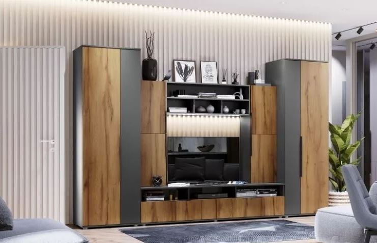 Модульная гостиная Моника Велес (Темно-серый/Дуб золотистый)