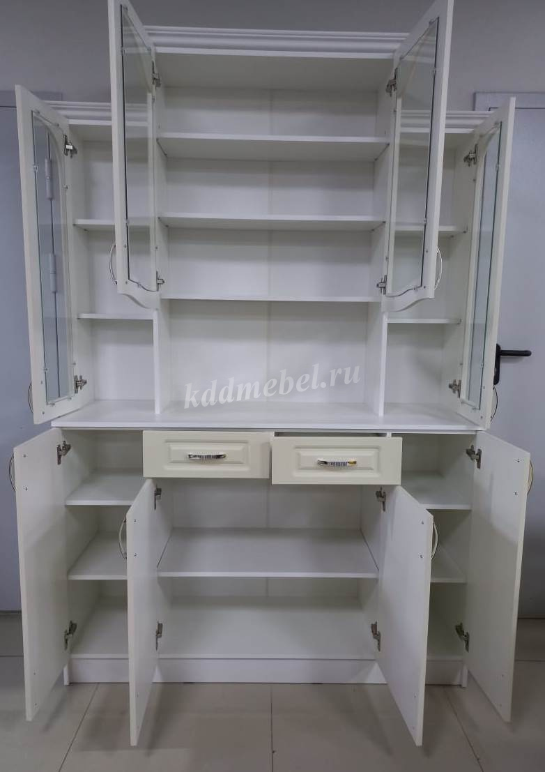 Корпус из ЛДСП белого цвета с тиснением «Древесные поры», фасады из плиты МДФ, облицованные высококачественной матовой пленкой ПВХ толщиной 0,3 мм.