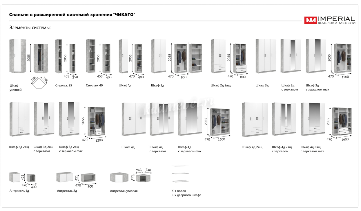 "Чикаго" - это сочетание минималистичного дизайна, комфорта и функциональности. Выигрышные комбинации свежих нейтральных оттенков создают воздушную атмосферу и позволяют легко менять интерьер. Множество модулей в едином стиле создают систему хранения и освобождают пространство.