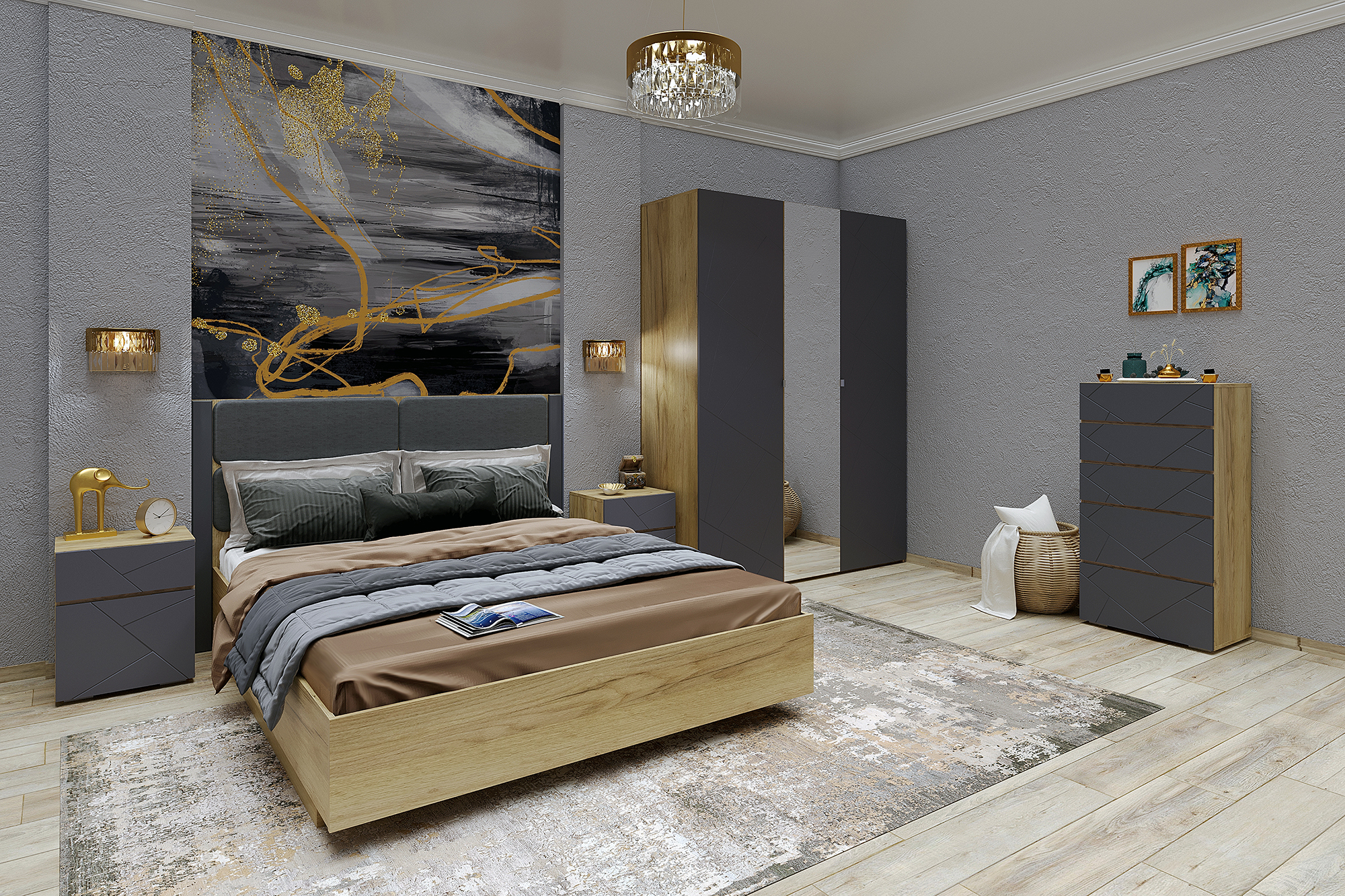 Спальня Шерлок цвет: Графит/Дуб крафт золотой.