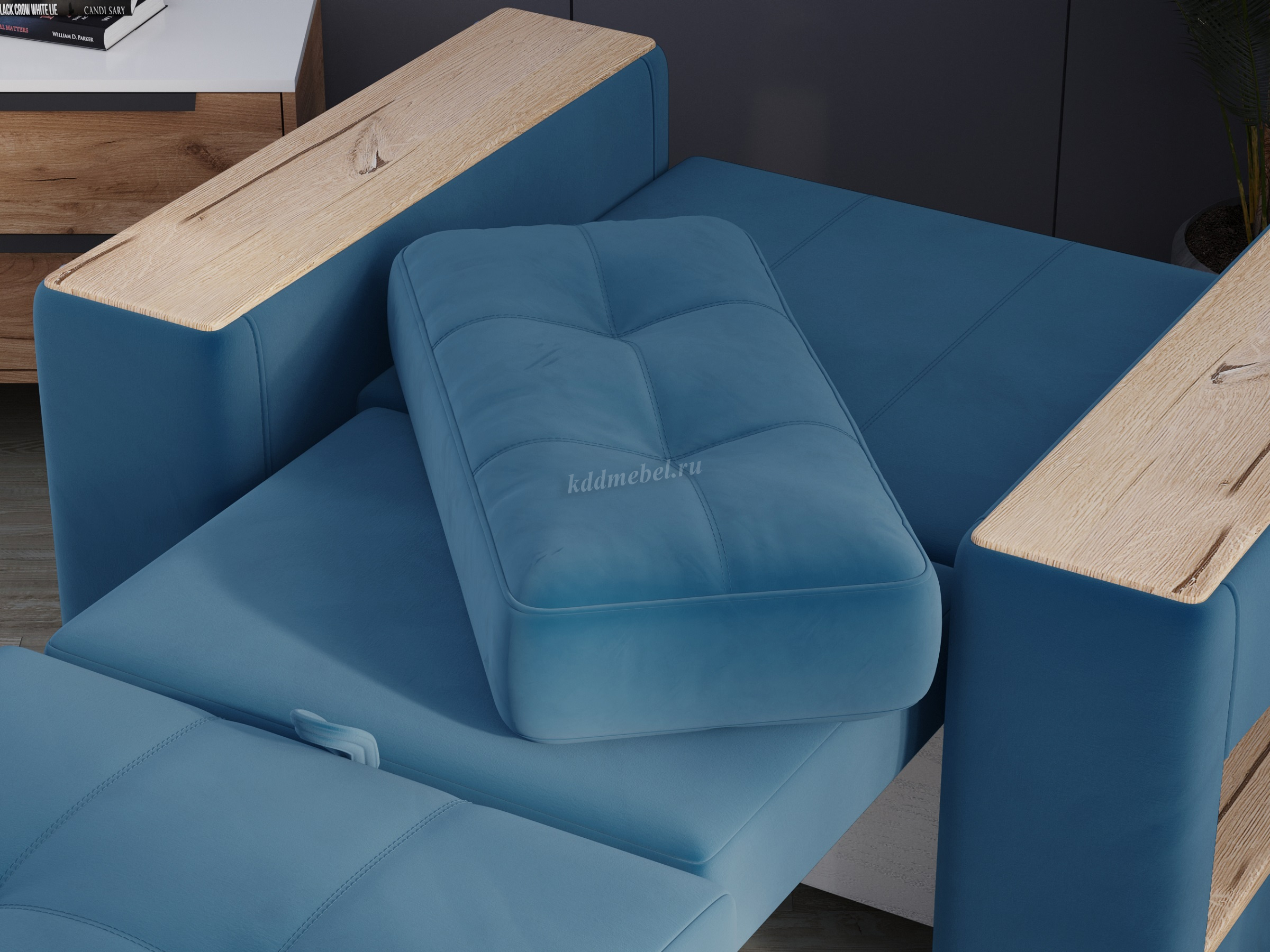 Подлокотники шириной 265 мм, обтянутые тканью и простеганные двойной отделочной декоративной строчкой.