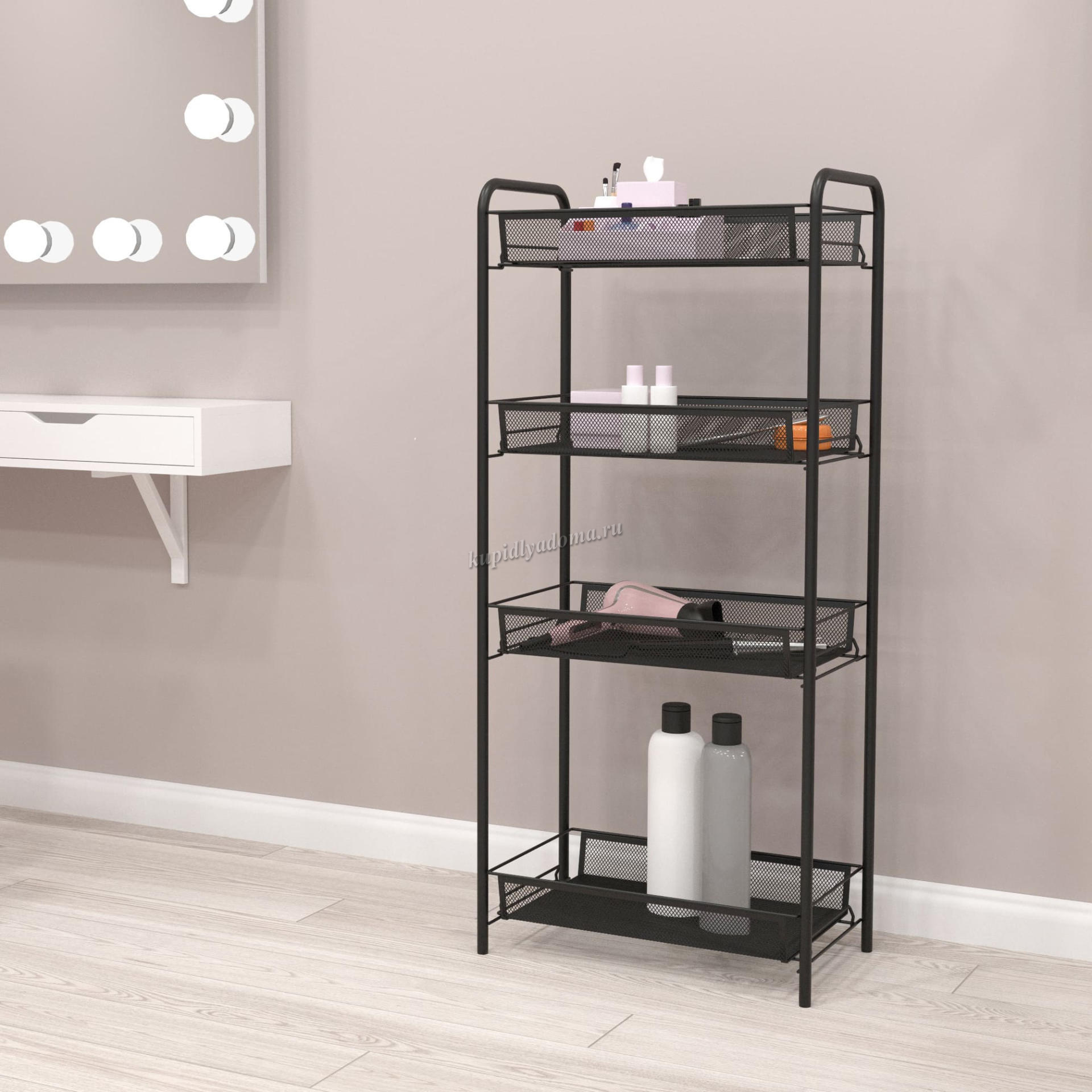 - Этажерка изготовлена из металла и покрыто полимерным слоем.