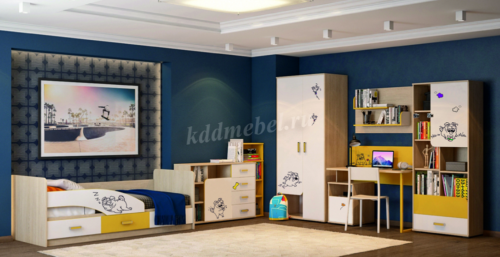 Цветовое решение: корпус/фасад- дуб сонома, желтый, белый.